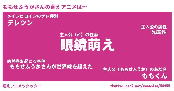 | 男性向けラノベタイトル風あだ名 | 『ももせふうかの憂鬱』 |