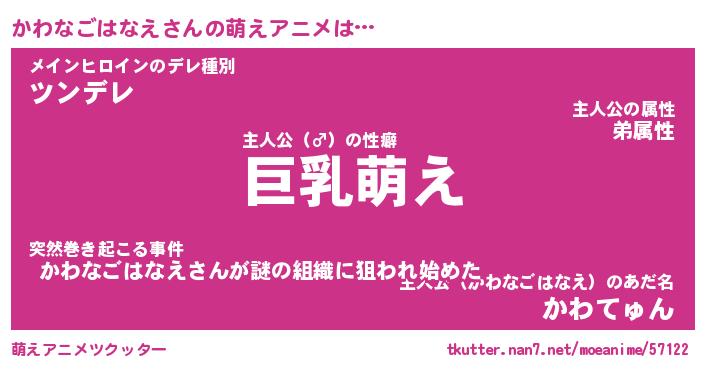 | 男性向けラノベタイトル風あだ名 | 『かわなごはなえの憂鬱』 |