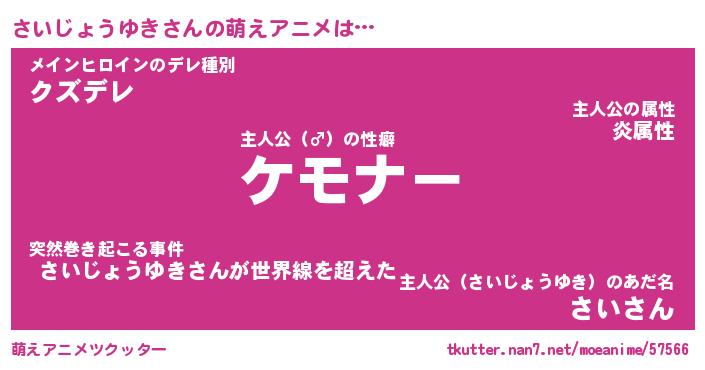 | 男性向けラノベタイトル風あだ名 | 『サイジョウユキアートオンライン』 |