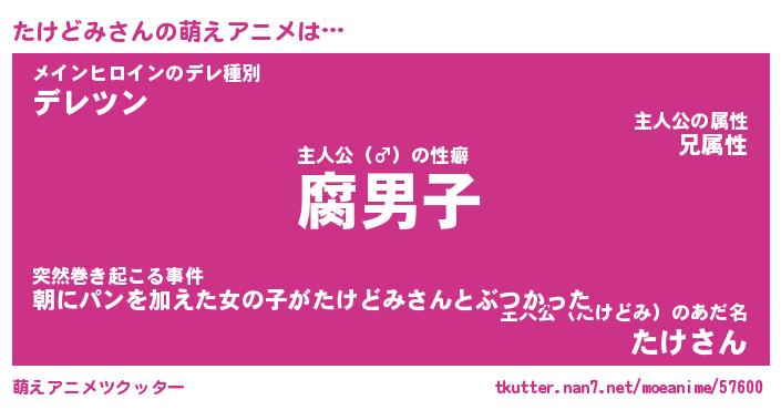 | ヘコむあだ名 | 『たけもー』『豆乳』『たけ太郎』 |