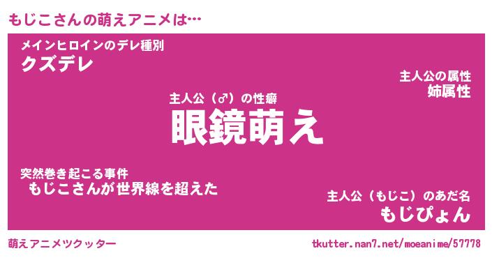 | 男性向けラノベタイトル風あだ名 | 『もじこの憂鬱』 |
