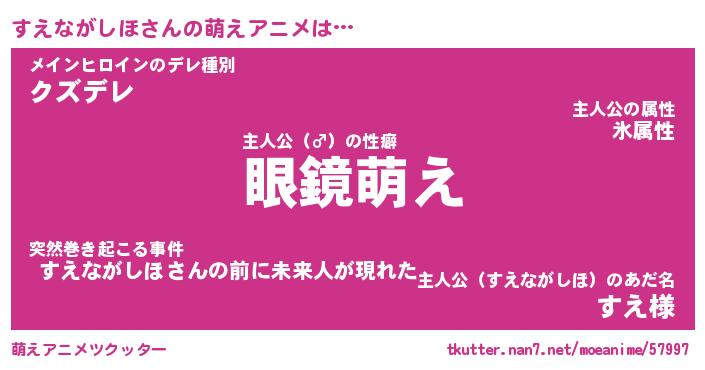 | 男性向けラノベタイトル風あだ名 | 『すえながしほの憂鬱』 |