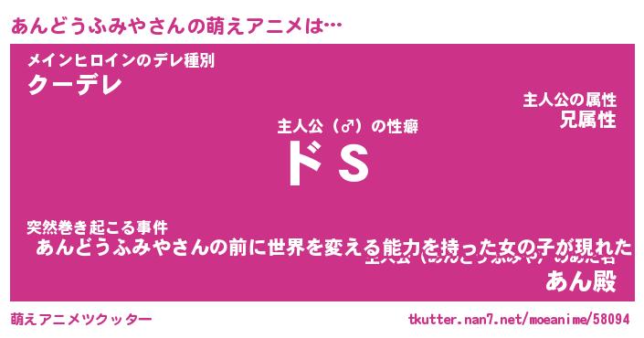 | 女子向けラノベタイトル風あだ名 | 『(仮)あんどうふみやのやんごとなき事情』 |