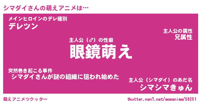 | 男性向けラノベタイトル風あだ名 | 『シマダイの憂鬱』 |