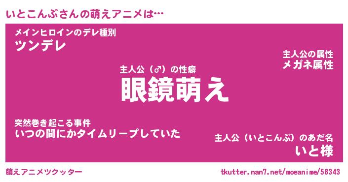 | 男性向けラノベタイトル風あだ名 | 『いとこんぶの憂鬱』 |