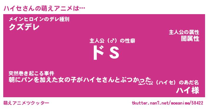 | 男性向けラノベタイトル風あだ名 | 『ハイセの憂鬱』 |