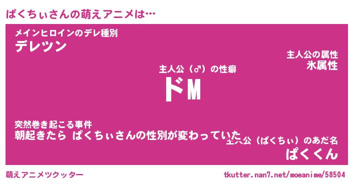 | 男性向けラノベタイトル風あだ名 | 『ぱくちぃの憂鬱』 |