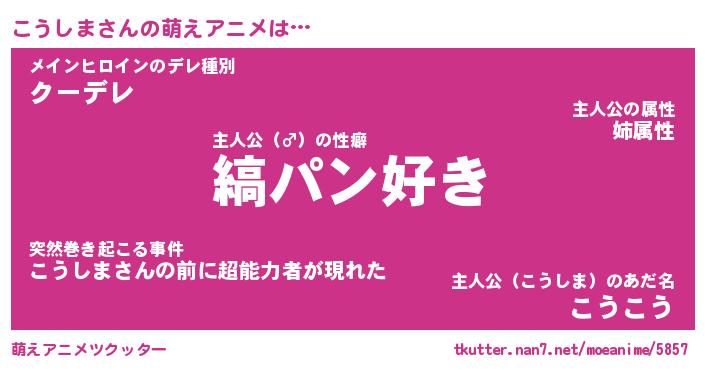 | 男性向けラノベタイトル風あだ名 | 『こうしまの憂鬱』 |