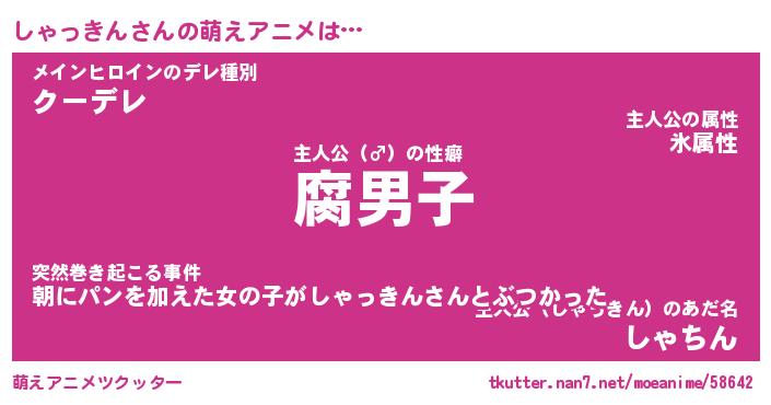 | ヘコむあだ名 | 『しゃにゅー』『レバニラ』『しゃお』 |