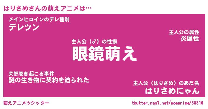 | 男性向けラノベタイトル風あだ名 | 『はりさめの憂鬱』 |