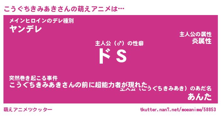 | 女子向けラノベタイトル風あだ名 | 『(仮)こうぐちきみあきのやんごとなき事情』 |