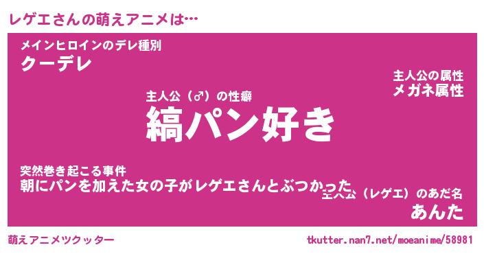 | ヘコむあだ名 | 『レゲにー』『なまこ酢』『レゲ太郎』 |
