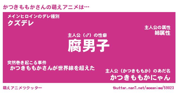 | 男性向けラノベタイトル風あだ名 | 『カツキモモカアートオンライン』 |