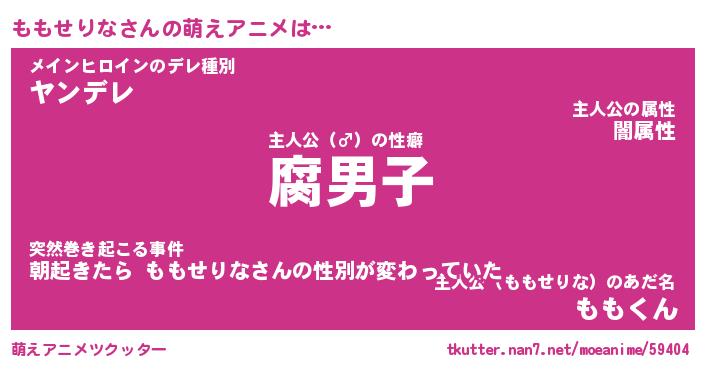 | 男性向けラノベタイトル風あだ名 | 『モモセリナアートオンライン』 |
