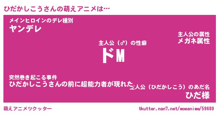 | ヒーロー風カッコイイあだ名 | 『スーパーヒダカシコウ』『幻影騎士ヒダ』 |