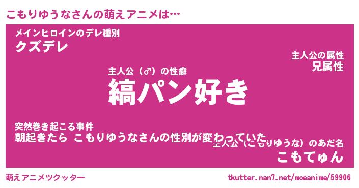 | 男性向けラノベタイトル風あだ名 | 『こもりゆうなの憂鬱』 |