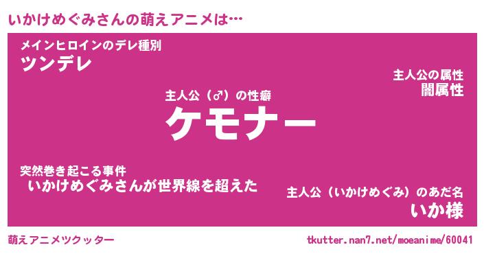 | ヒーロー風カッコイイあだ名 | 『スーパーイカケメグミ』『幻影騎士イカ』 |