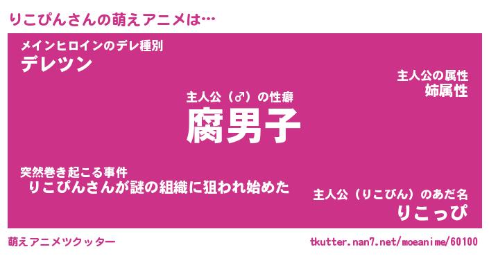 | 男性向けラノベタイトル風あだ名 | 『リコピンアートオンライン』 |