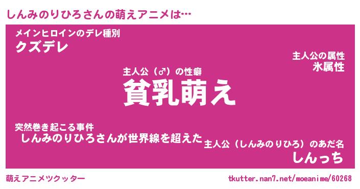| 男性向けラノベタイトル風あだ名 | 『しんみのりひろの憂鬱』 |