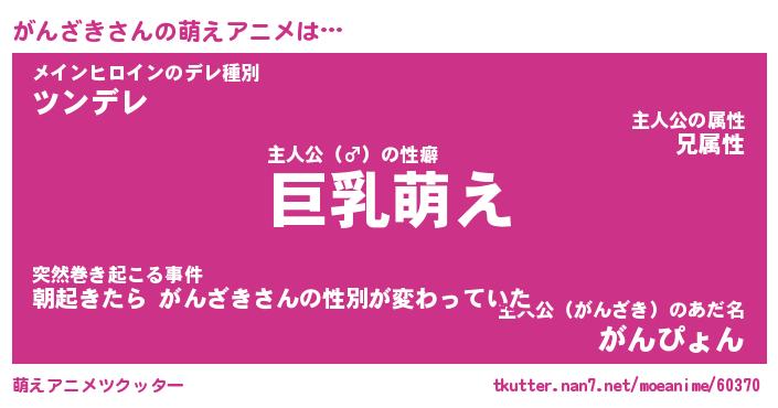 | 男性向けラノベタイトル風あだ名 | 『がんざきの憂鬱』 |