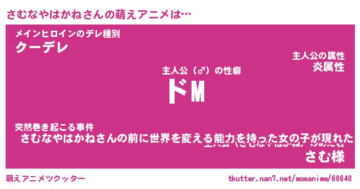 | 肩書あだ名 | 『さむなやはかね御曹司』 |