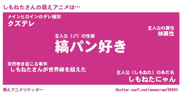 | 意味不明あだ名 | 『ペロリンしもねた』『永久保存しもねた』 |