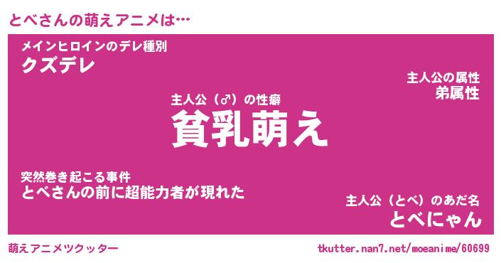 | 男性向けラノベタイトル風あだ名 | 『とべの憂鬱』 |