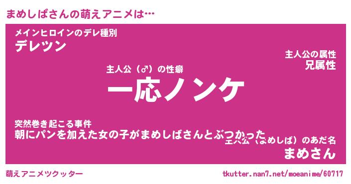 | 男性向けラノベタイトル風あだ名 | 『マメシバアートオンライン』 |