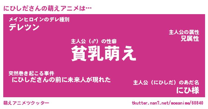 | 男性向けラノベタイトル風あだ名 | 『にひしだの憂鬱』 |