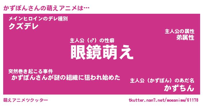 | 男性向けラノベタイトル風あだ名 | 『かずぽんの憂鬱』 |