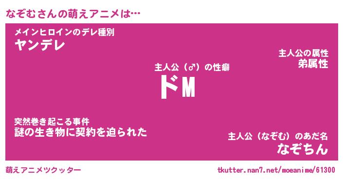 | 男性向けラノベタイトル風あだ名 | 『なぞむの憂鬱』 |
