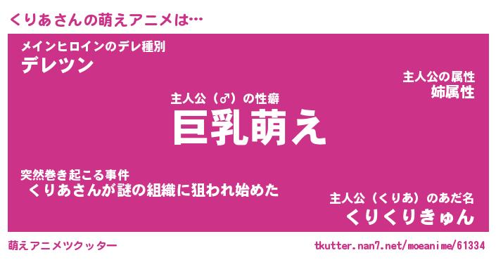 | 男性向けラノベタイトル風あだ名 | 『くりあの憂鬱』 |