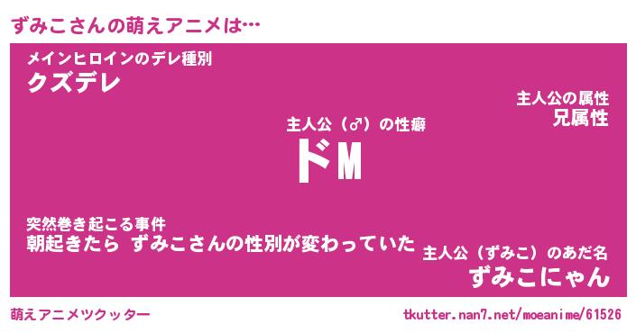 | 男性向けラノベタイトル風あだ名 | 『ずみこの憂鬱』 |