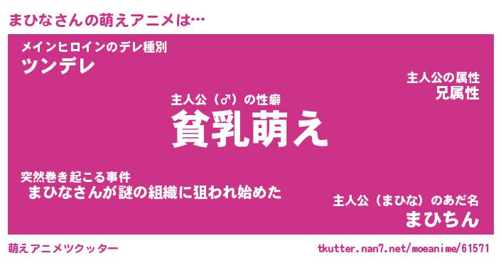 | 男性向けラノベタイトル風あだ名 | 『まひなの憂鬱』 |