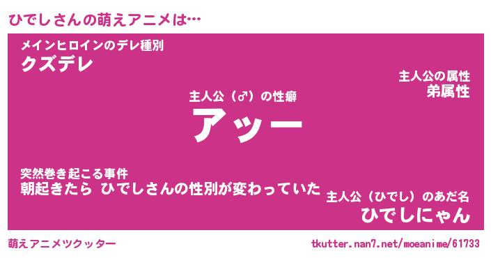 | 女子向けラノベタイトル風あだ名 | 『誰かこのひでしを説明してください! ~契約から始まるウェディング~』 |