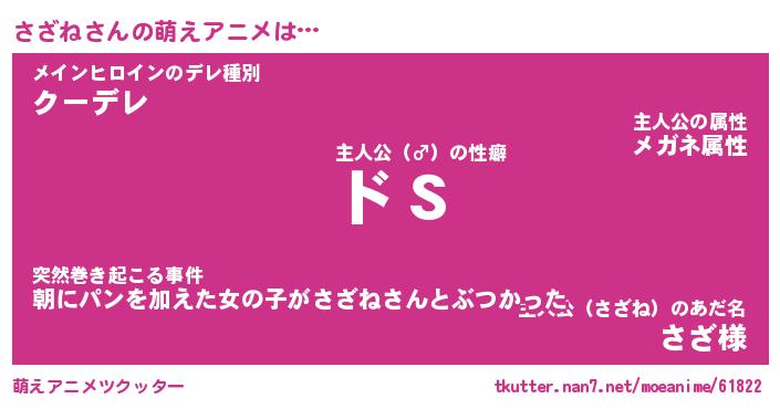 | ヘコむあだ名 | 『さざもー』『牛乳』『さざぷりん』 |