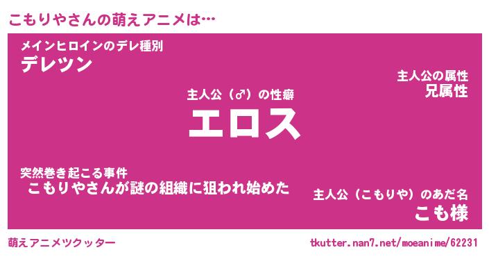 | 男性向けラノベタイトル風あだ名 | 『コモリヤアートオンライン』 |