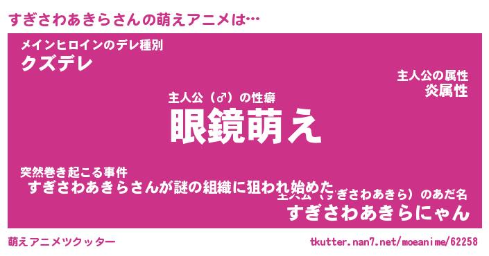 | 男性向けラノベタイトル風あだ名 | 『すぎさわあきらの憂鬱』 |