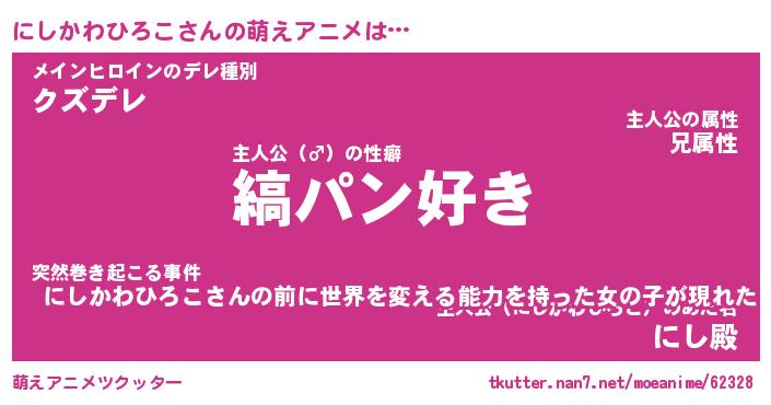 | 男性向けラノベタイトル風あだ名 | 『にしかわひろこの憂鬱』 |