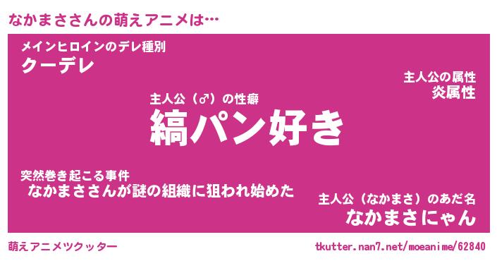 | 女子向けラノベタイトル風あだ名 | 『(仮)なかまさのやんごとなき事情』 |