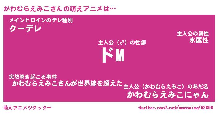 | 女子向けラノベタイトル風あだ名 | 『(仮)かわむらえみこのやんごとなき事情』 |