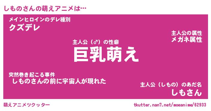 | 男性向けラノベタイトル風あだ名 | 『しものの憂鬱』 |