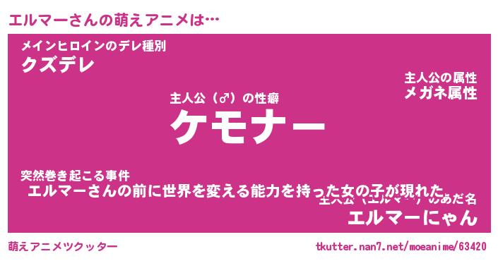 | 女子向けラノベタイトル風あだ名 | 『誰かこのエルマーを説明してください! ~契約から始まるウェディング~』 |