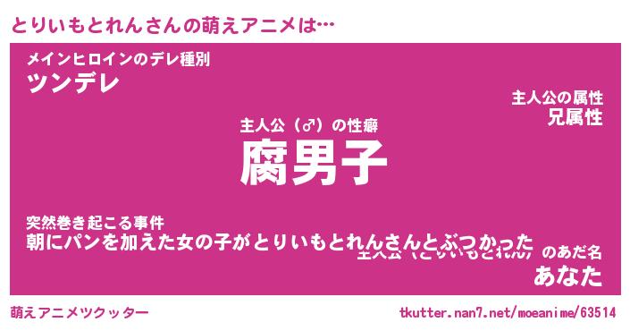 | 男性向けラノベタイトル風あだ名 | 『トリイモトレンアートオンライン』 |