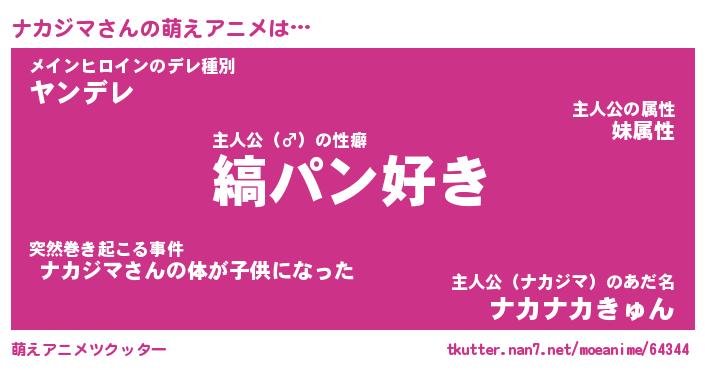 | 男性向けラノベタイトル風あだ名 | 『ナカジマの憂鬱』 |
