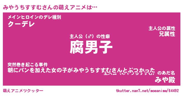 | ファンタジー風あだ名 | 『ミヤフェル』『ファントムミヤス』 |