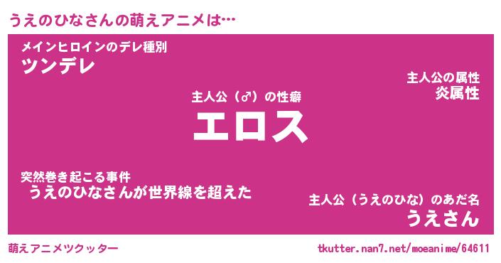| 男性向けラノベタイトル風あだ名 | 『ウエノヒナアートオンライン』 |