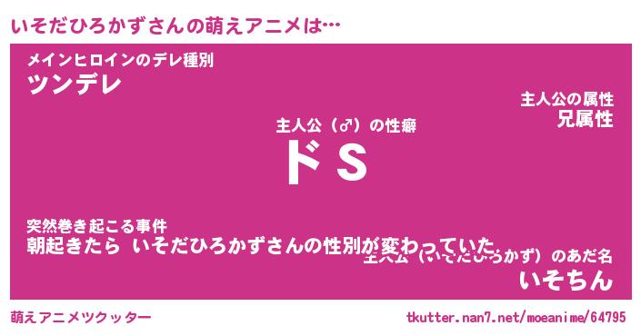 | 女子向けラノベタイトル風あだ名 | 『(仮)いそだひろかずのやんごとなき事情』 |