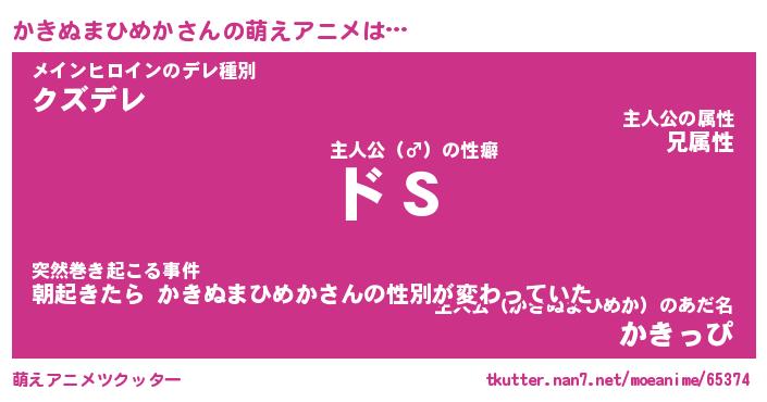 | 男性向けラノベタイトル風あだ名 | 『かきぬまひめかの憂鬱』 |