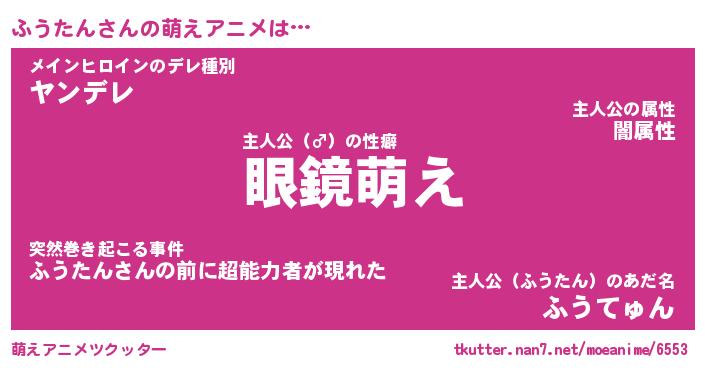 | 男性向けラノベタイトル風あだ名 | 『ふうたんの憂鬱』 |